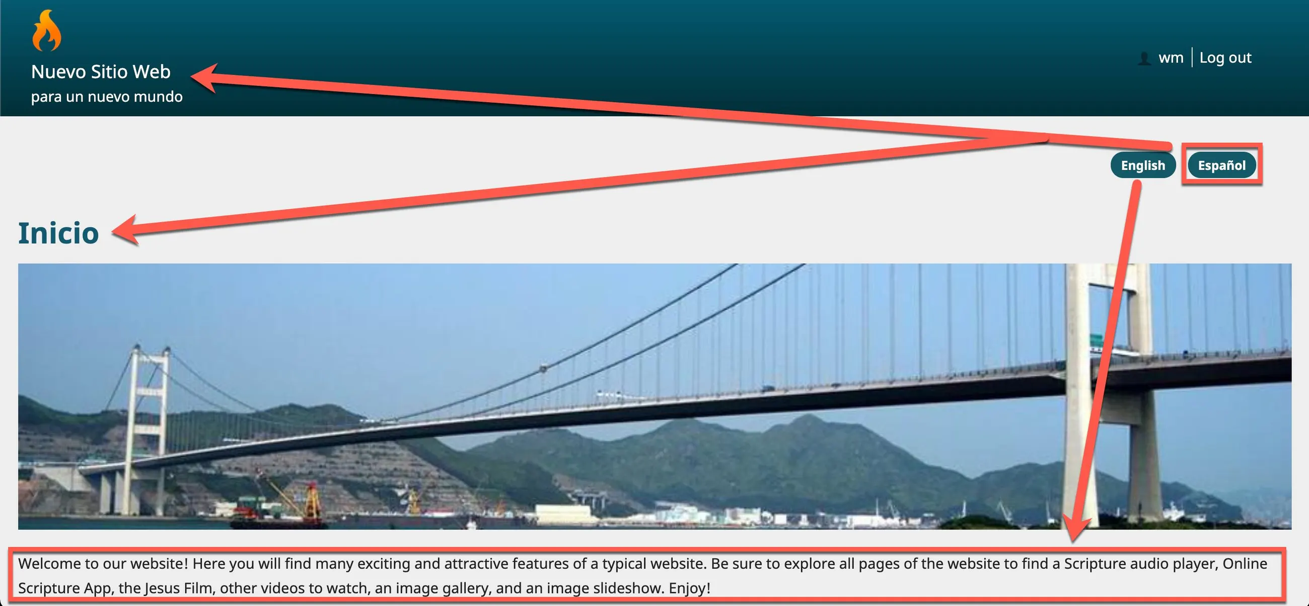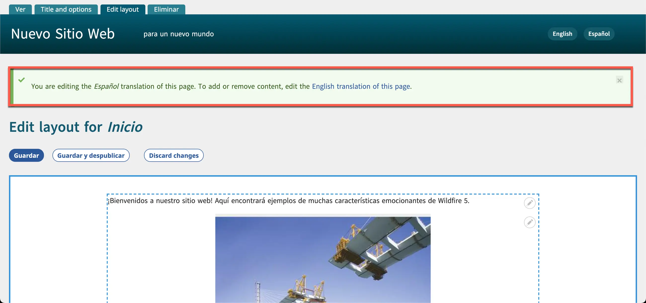 a) Note the message at the top of the screen. You can edit text on this screen, but you can only alter the layout of the page in the original language in which the page was created.