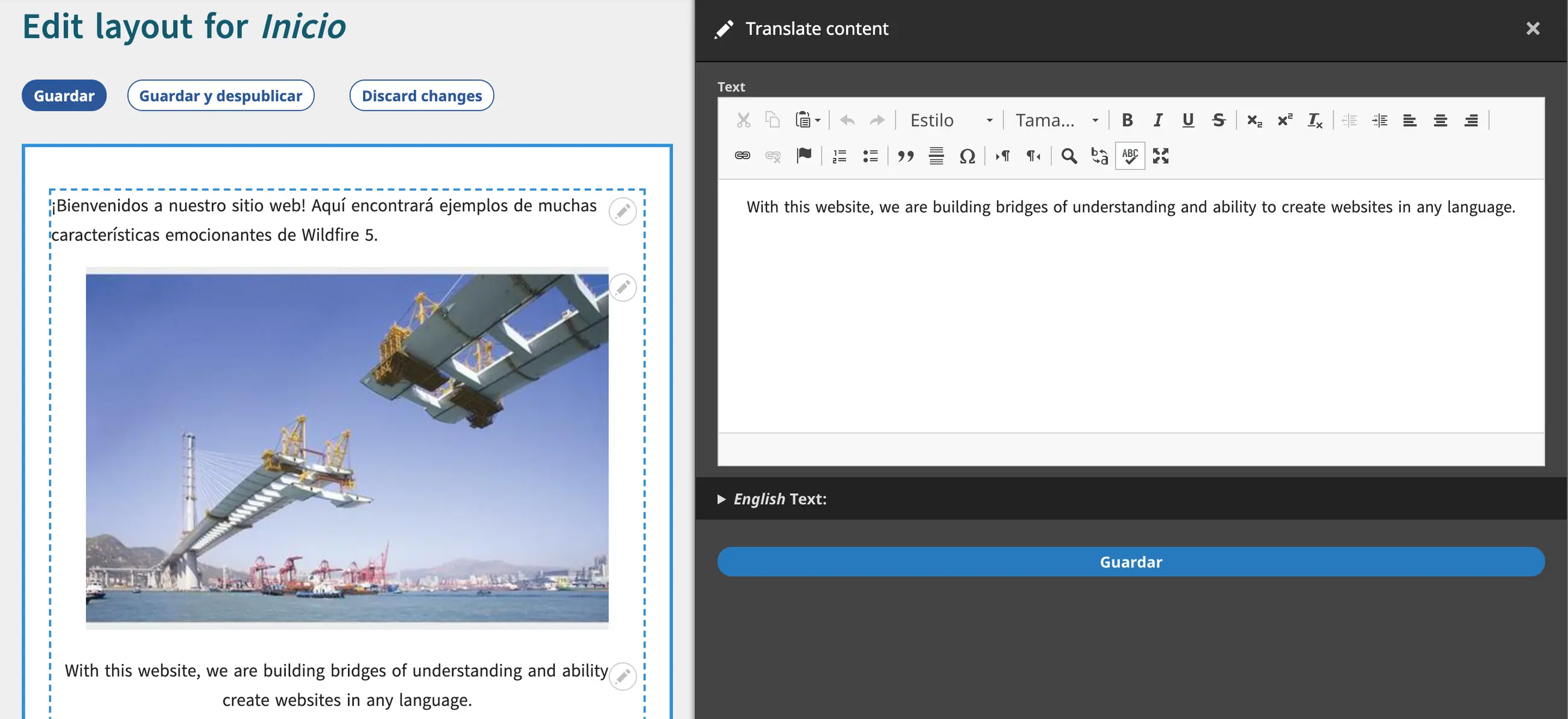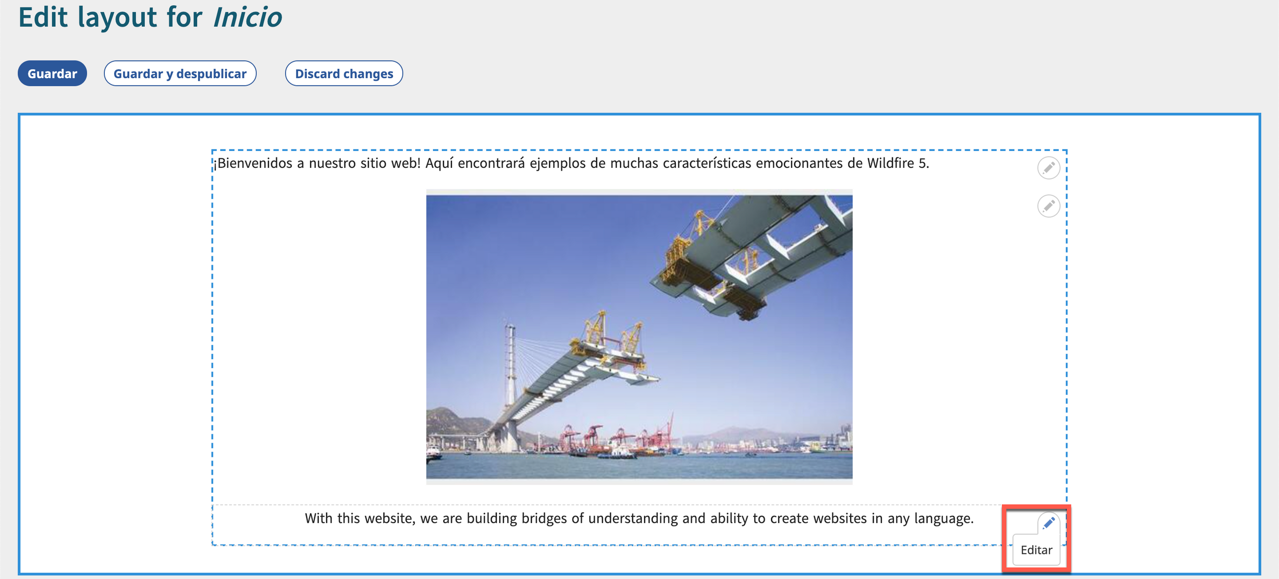 3. Scroll down if needed and locate the Content block that contains the text you wish to translate.