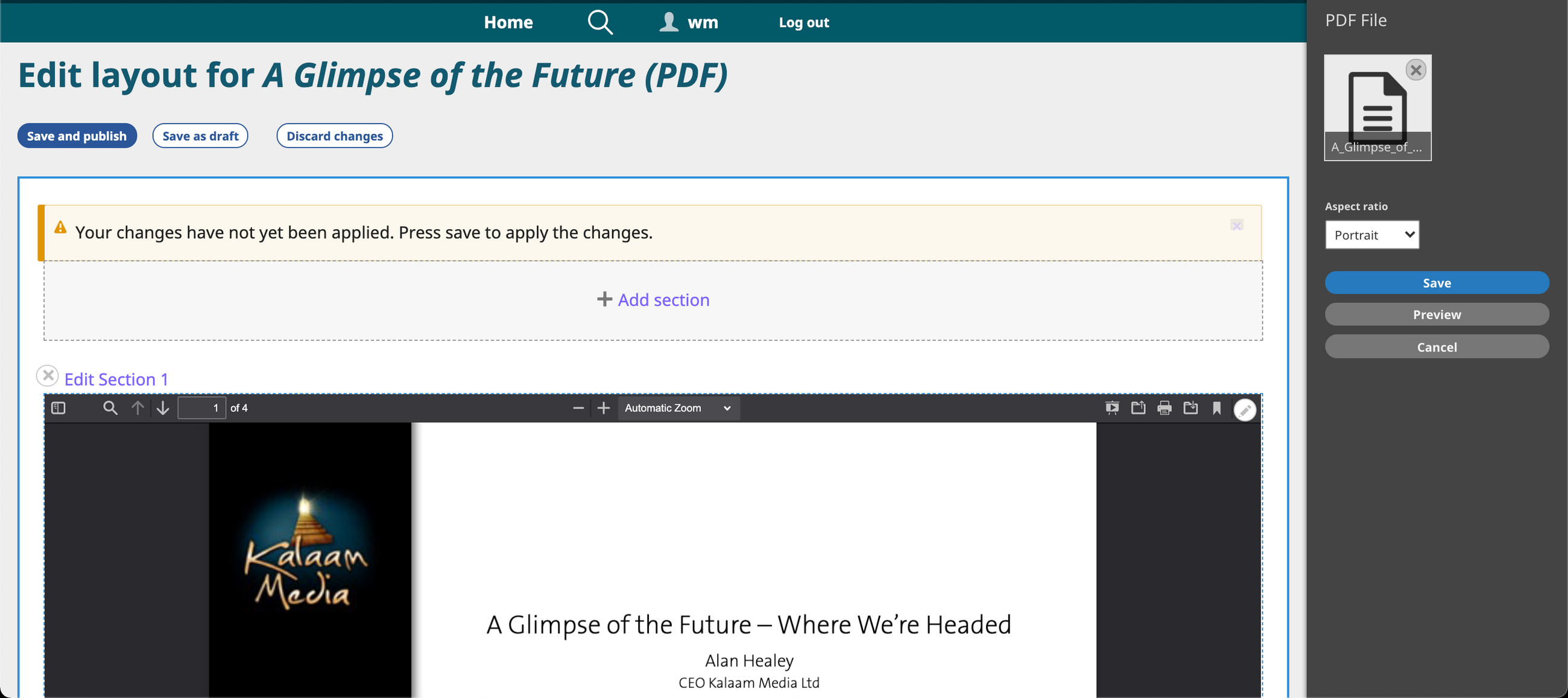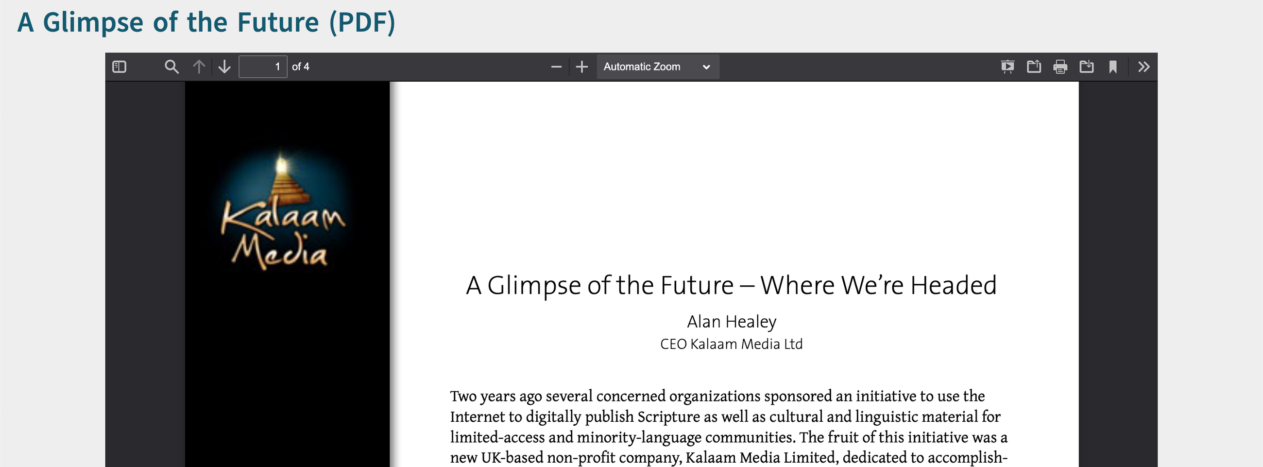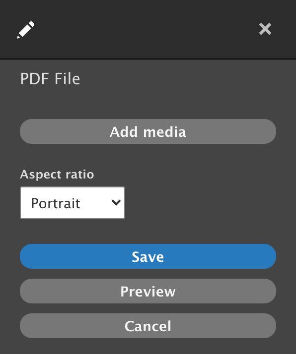 1. A PDF content block presents a single PDF file in a frame that allows the website visitor to navigate through the document, print it, or download it.