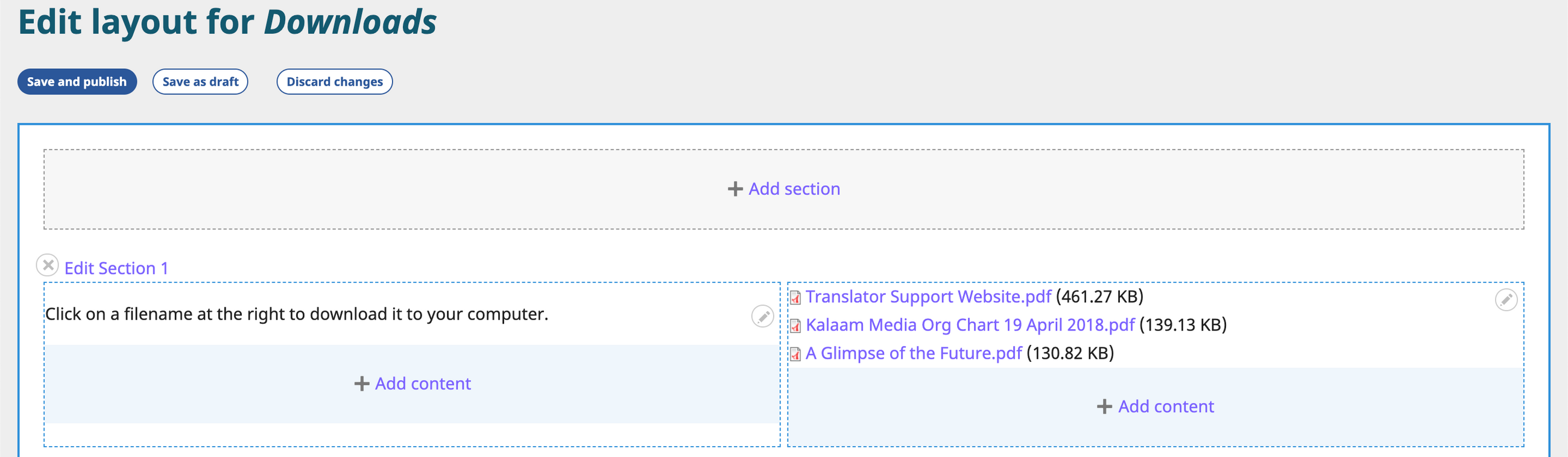 8. We recommend including a Text content block on the page with brief instructions for the Downloads list.