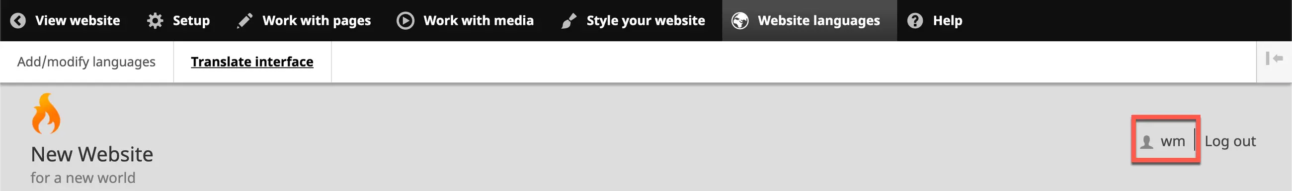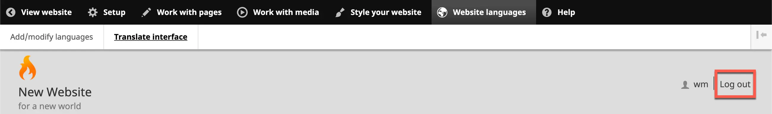 1. To log out of the Wildfire Website Builder System, simply click on the link at the top right of any screen.