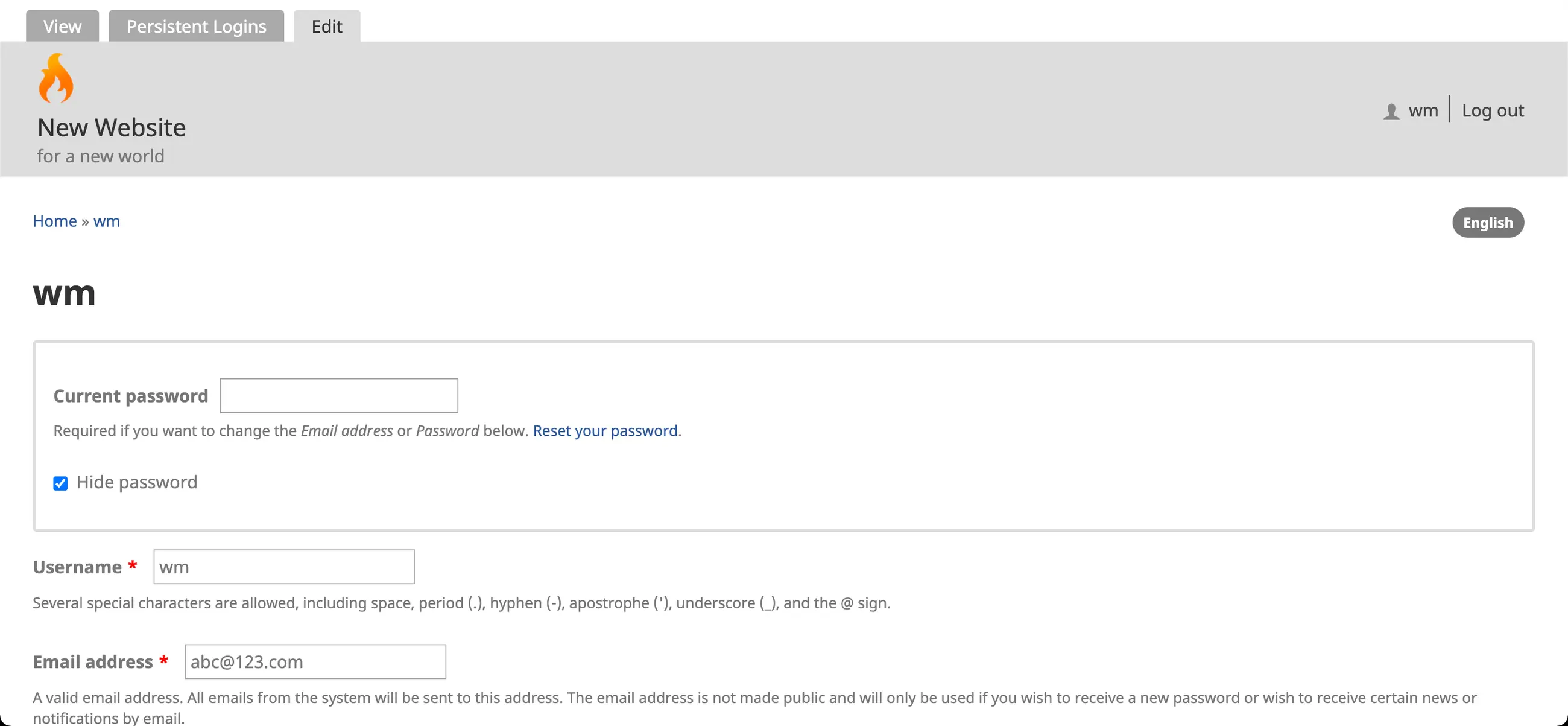 1. You may review and edit your account details by clicking on the link <username> at the top right of any screen in the Wildfire Website Builder System.