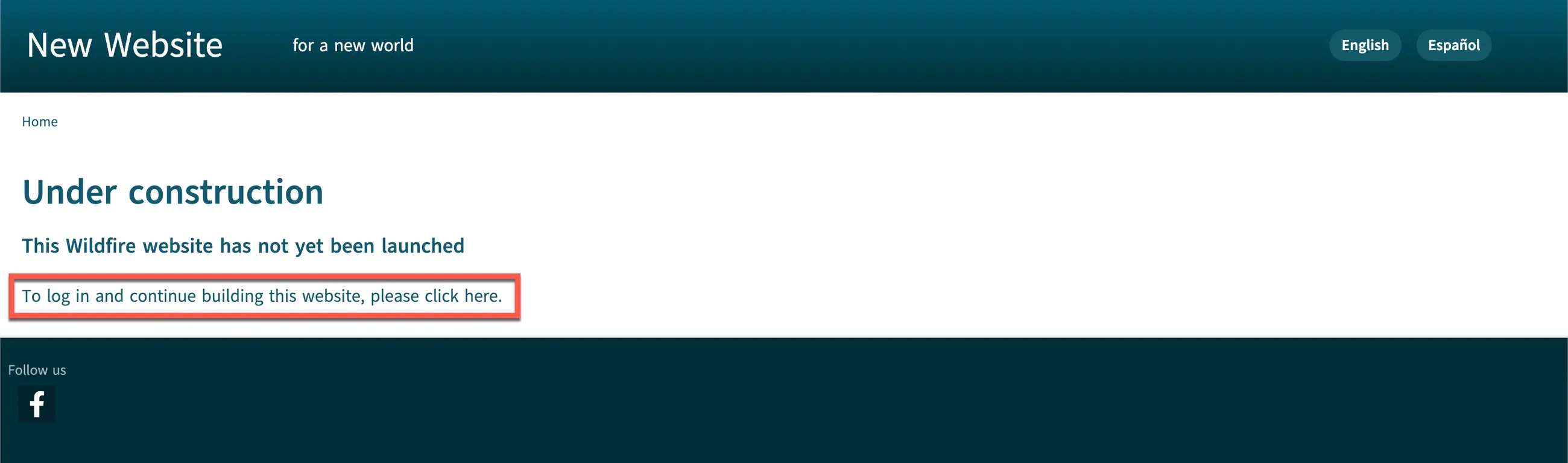 b) If your website has been launched, you will see the public Home page of the website.