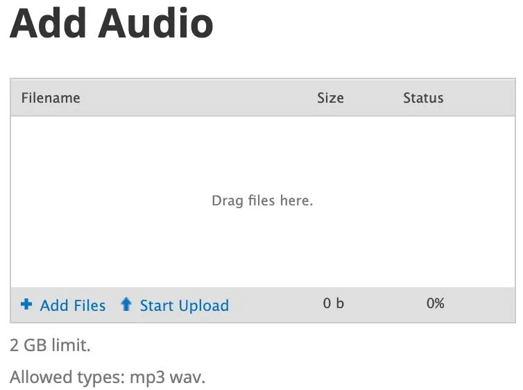 Below the upload box, you are reminded of the maximum file size (per individual file) and the allowed file formats for the media category chosen.