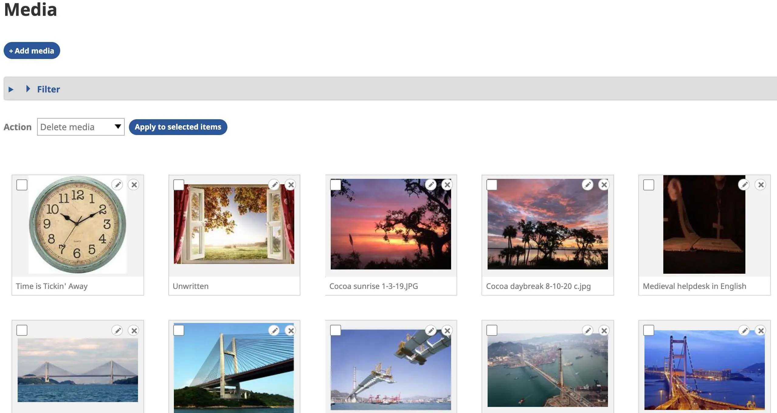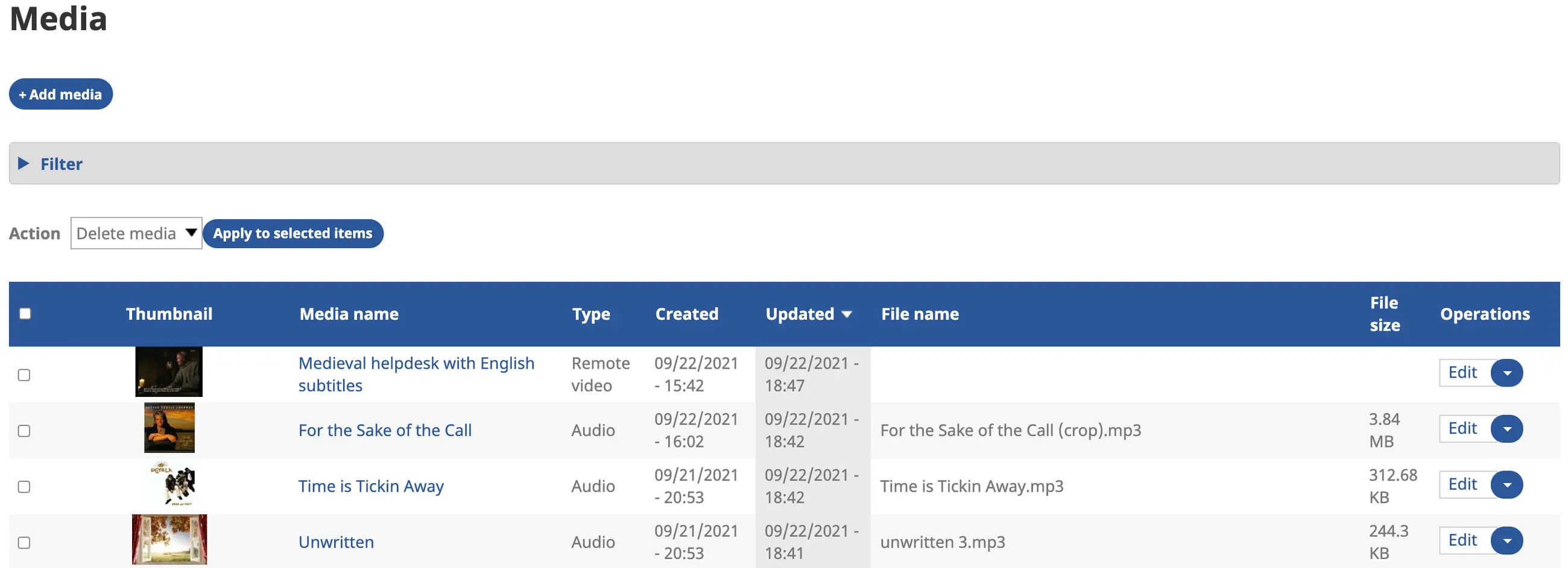 d) The media filter and bulk actions are still active.