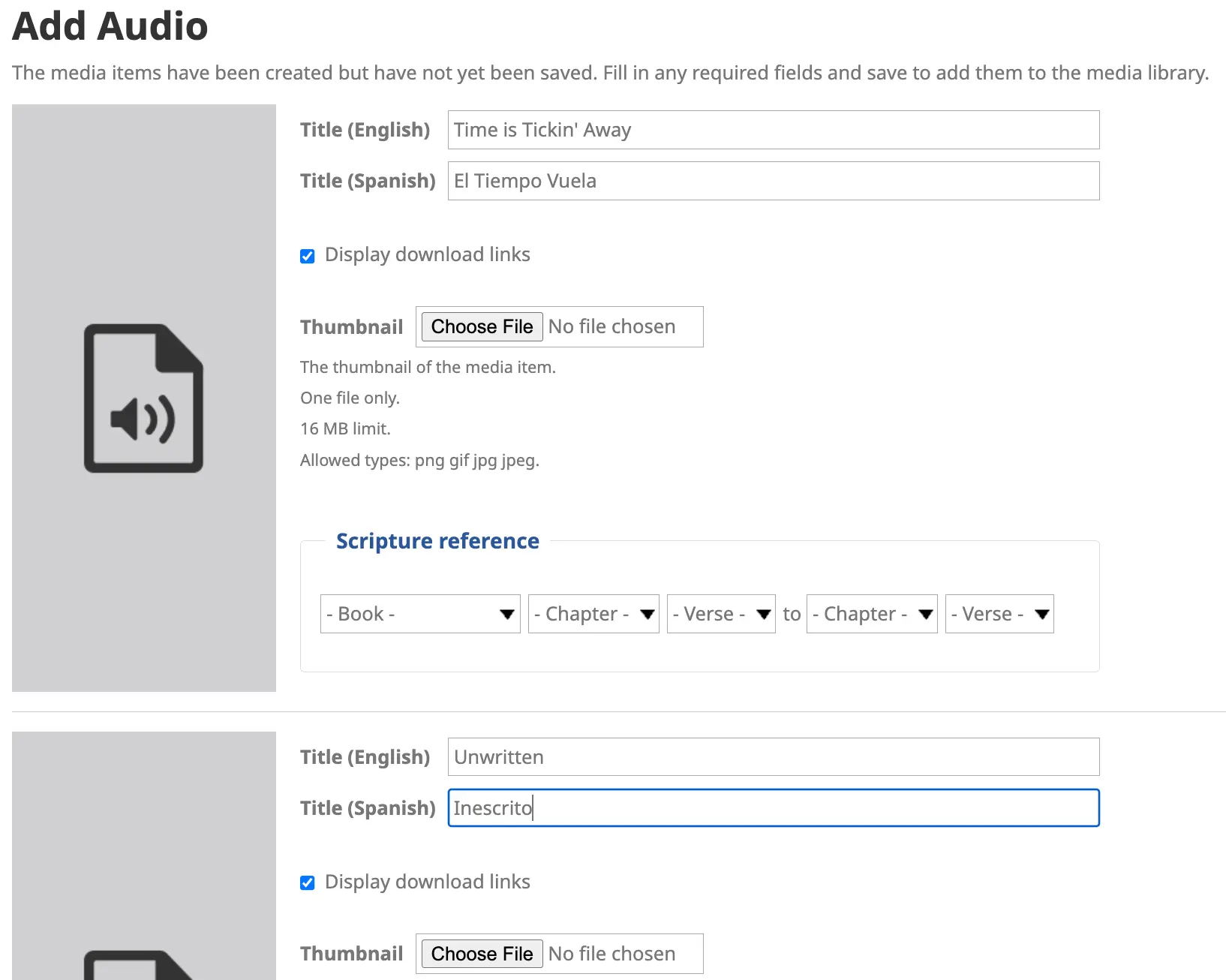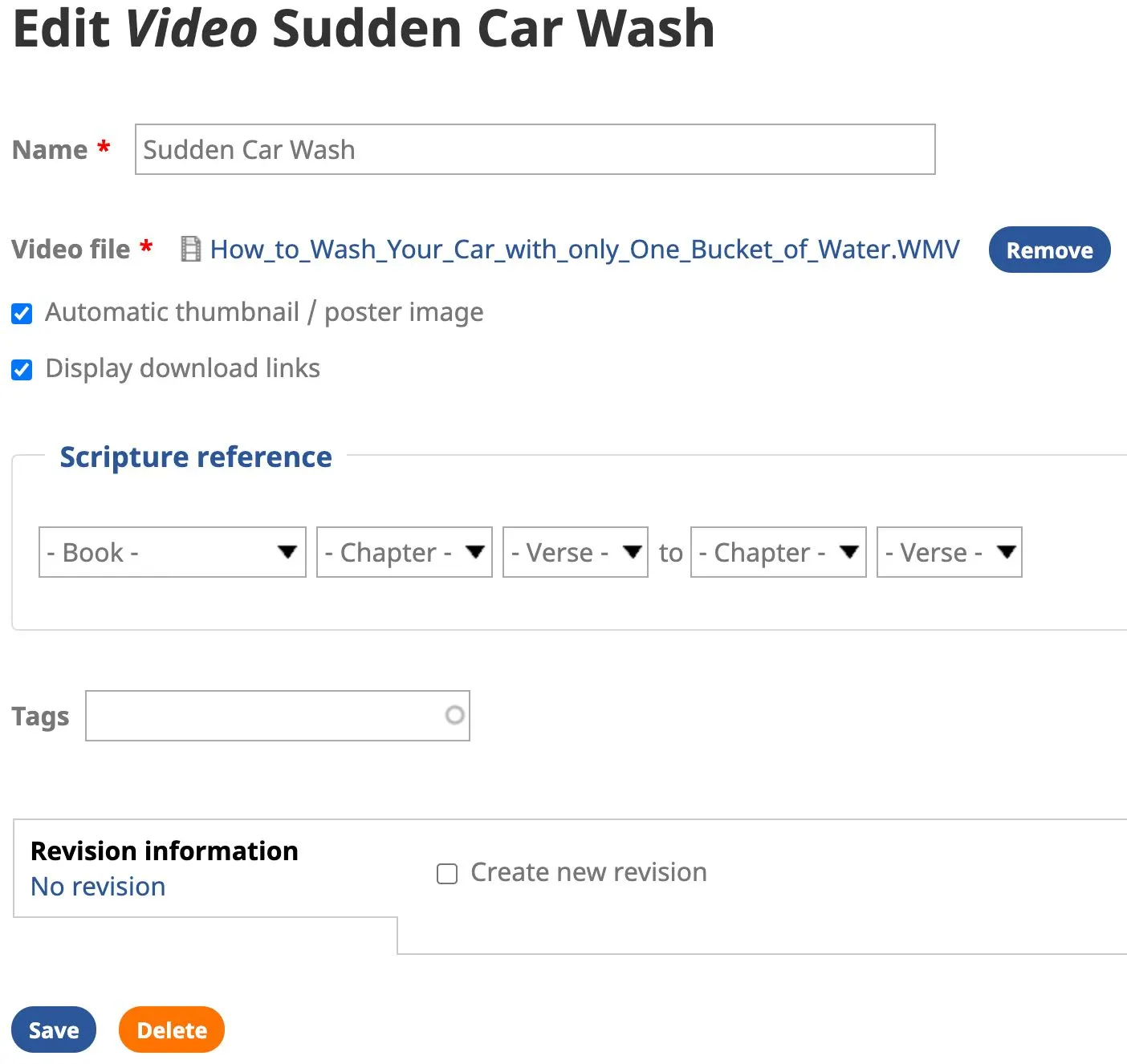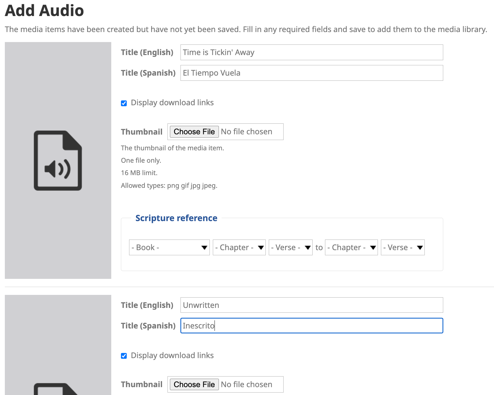 3. You may edit items in the Media Library to add (or change) a Scripture reference and tags.