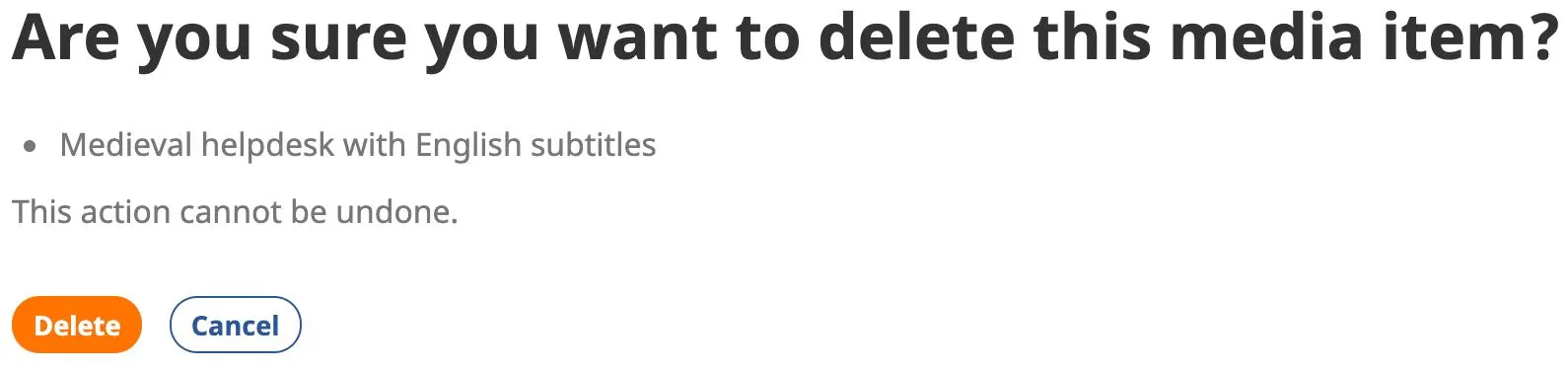 e) If you selected Delete, the next screen asks you to confirm the action.