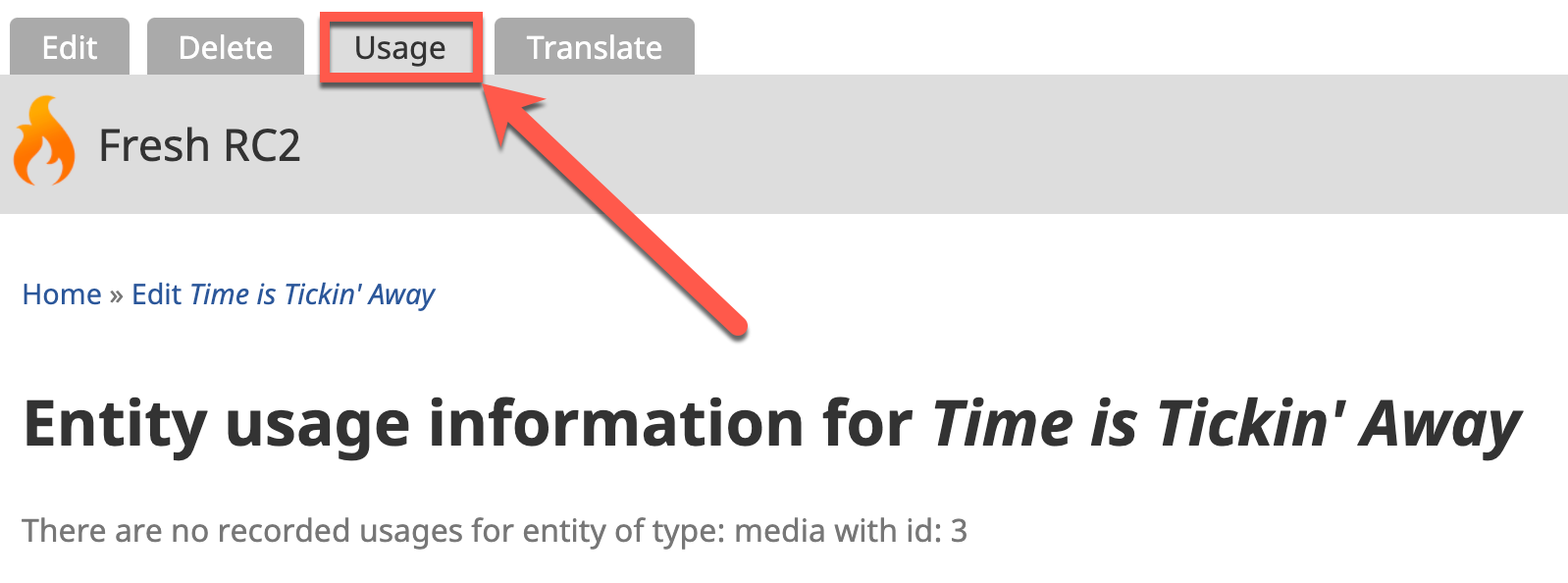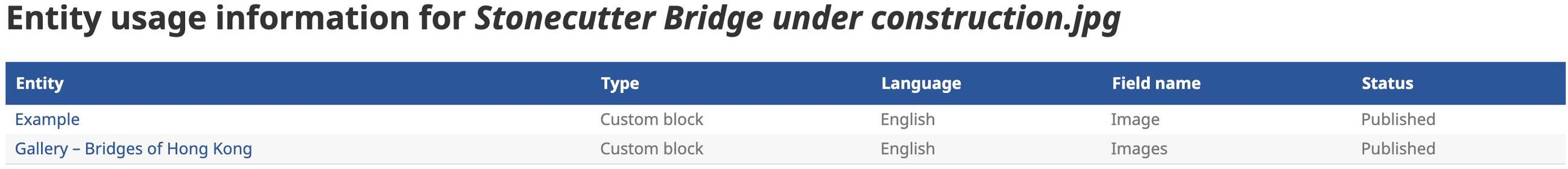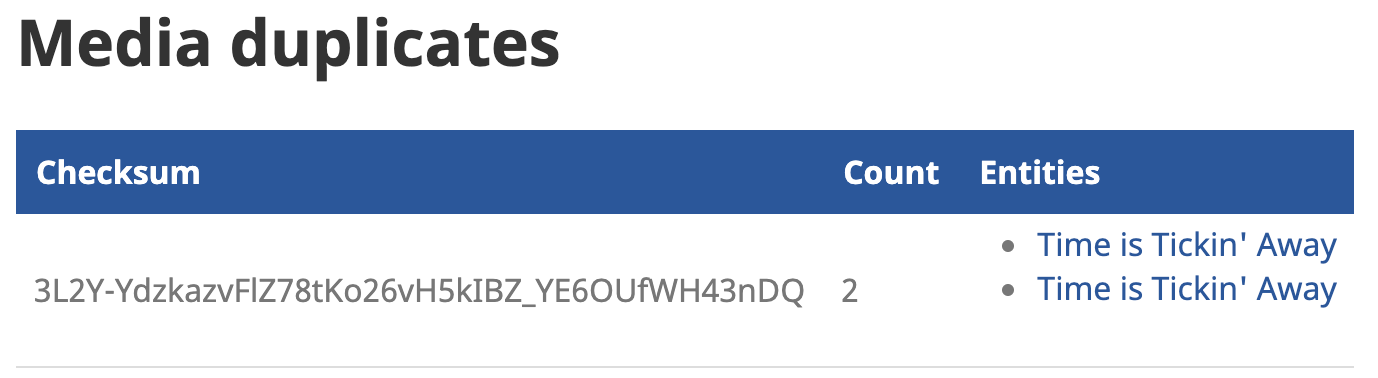 6. If the item is shown as being used on a web page, do not delete it. Go back to the Media duplicates screen and check the other item shown.