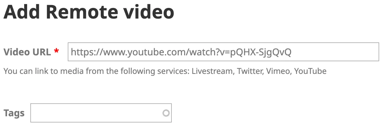 3. At the next screen, you are asked to supply the URL for the remote video.
