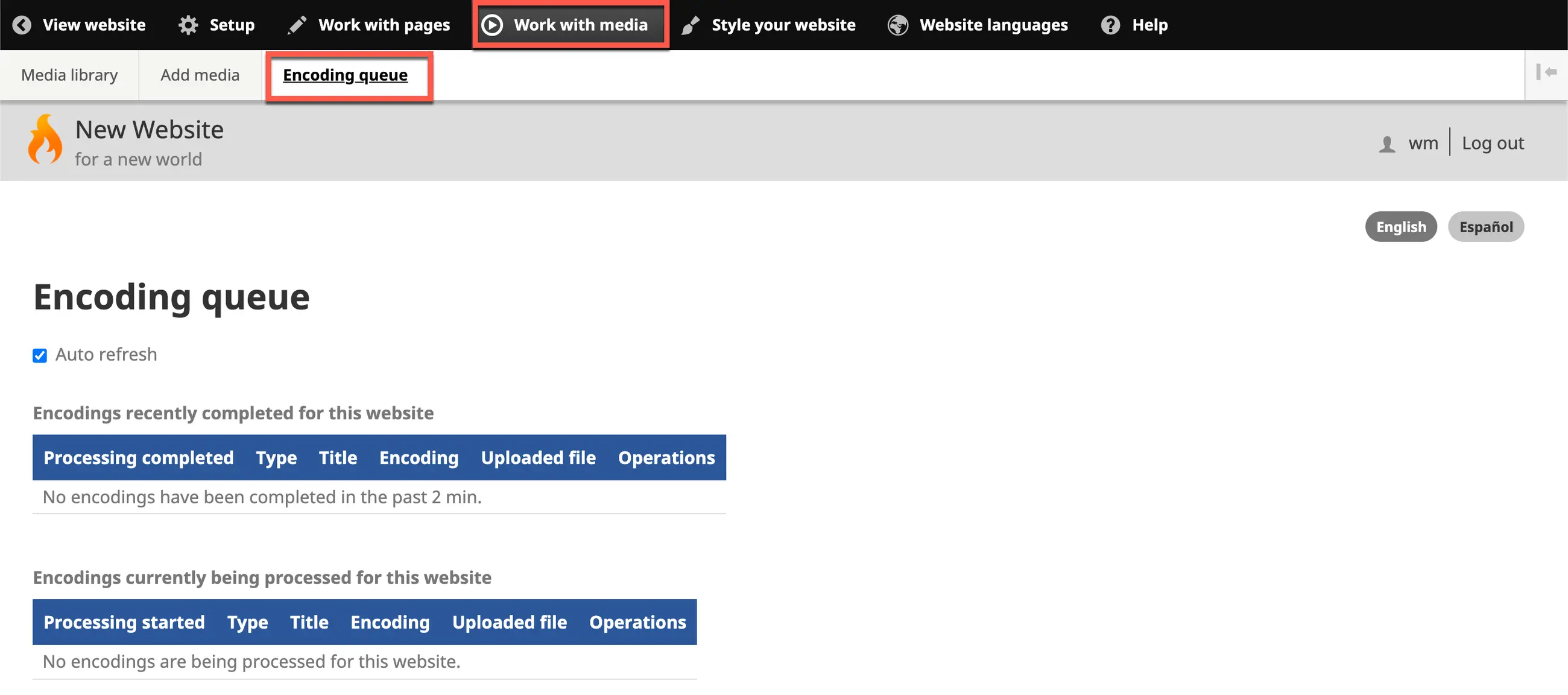 2. The Encoding queue shows you if files are still being encoded by the system. They will not play on a page until they are fully encoded.