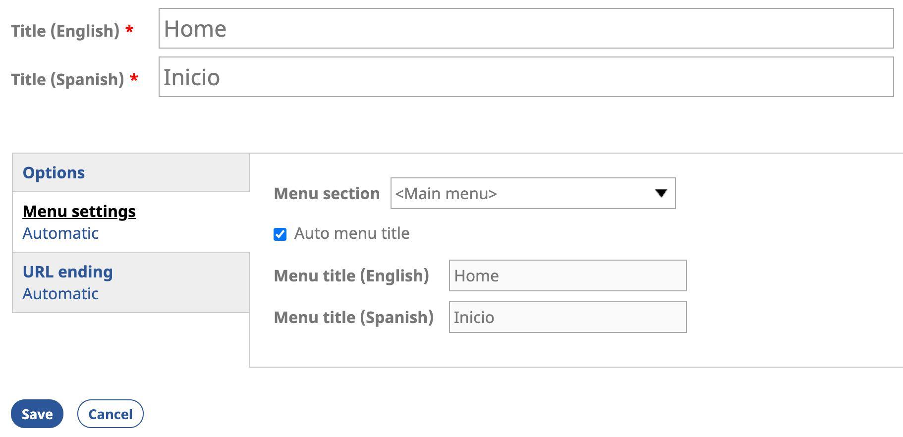 2) Unchecked – requires an alternate menu title to be entered in the spaces below.