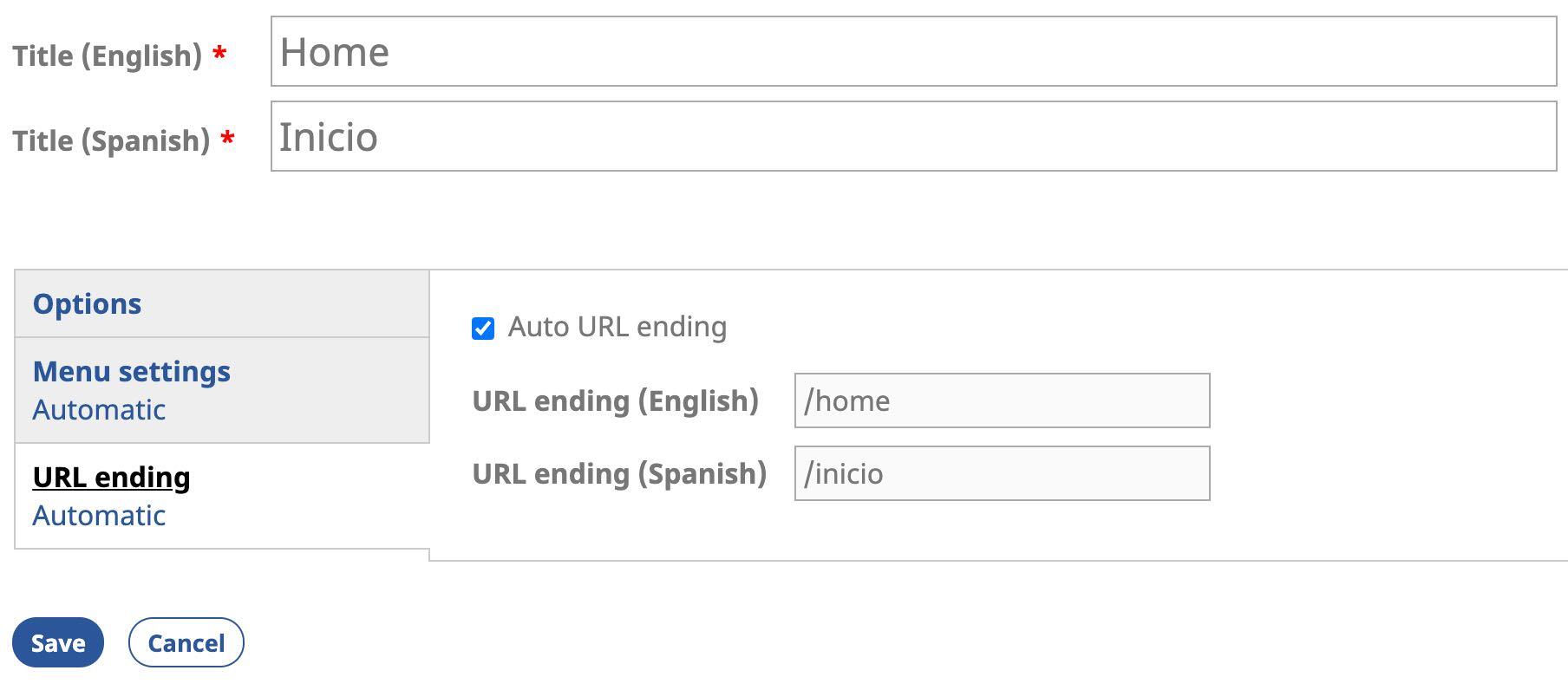 2) Unchecked – requires an alternate URL ending to be entered in the spaces below.