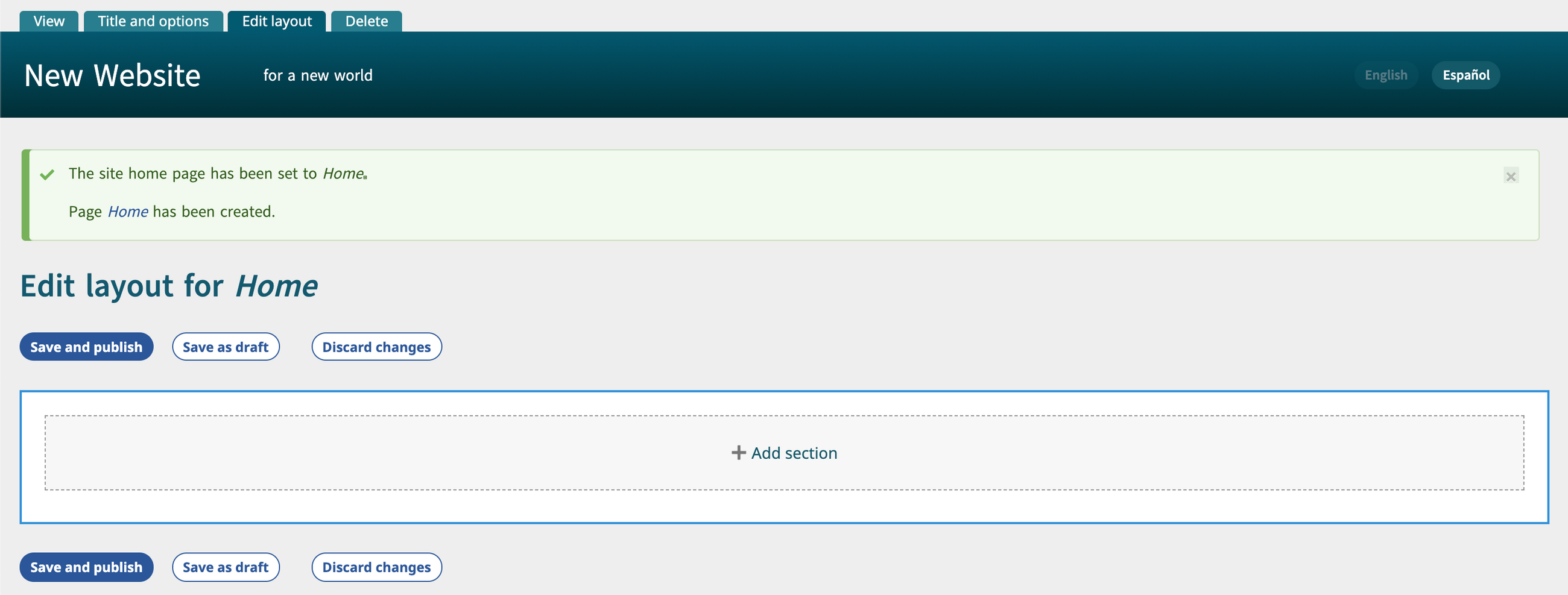 Before the website is launched, Save and publish and Save as draft have little functional difference, although the page listings look different on the Overview chart.
