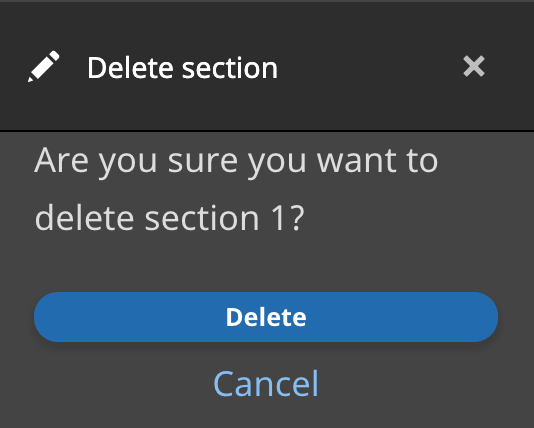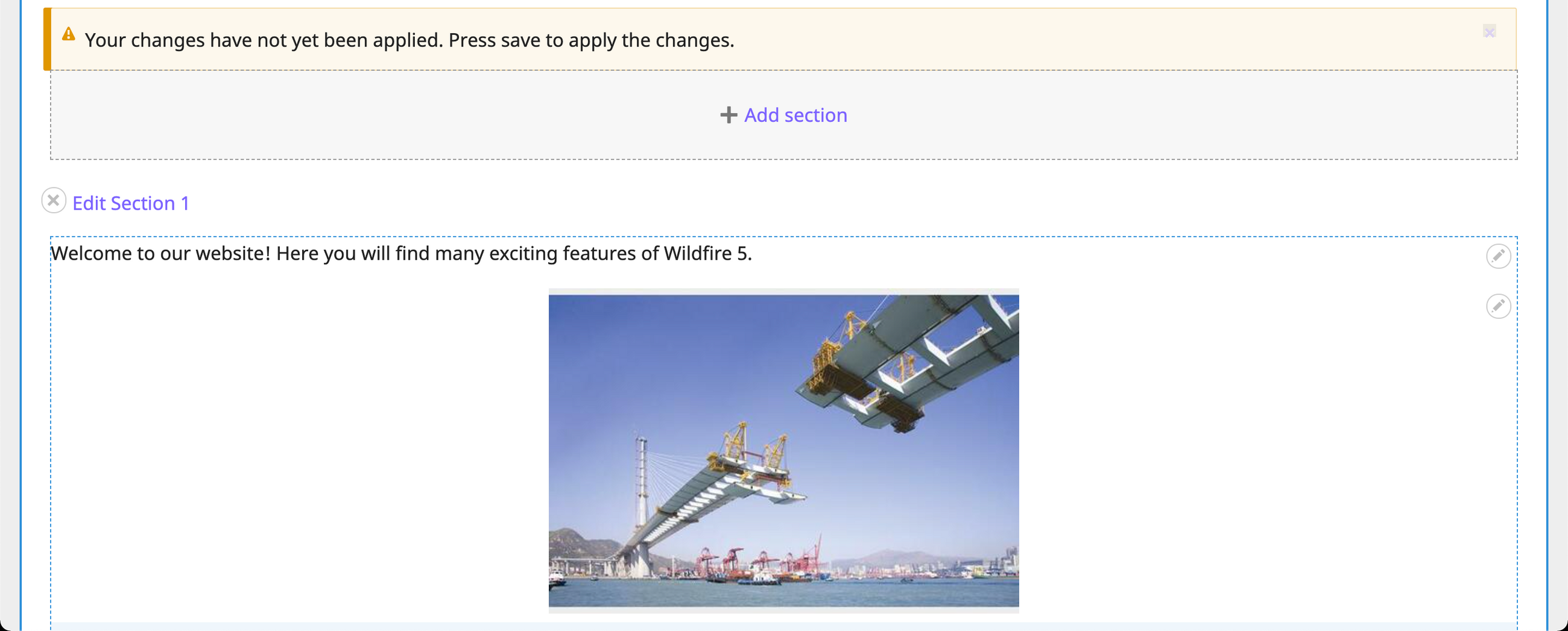 5. Note that there are now Section selectors both above and below the section just filled. This allows you to add sections before and after the current section.