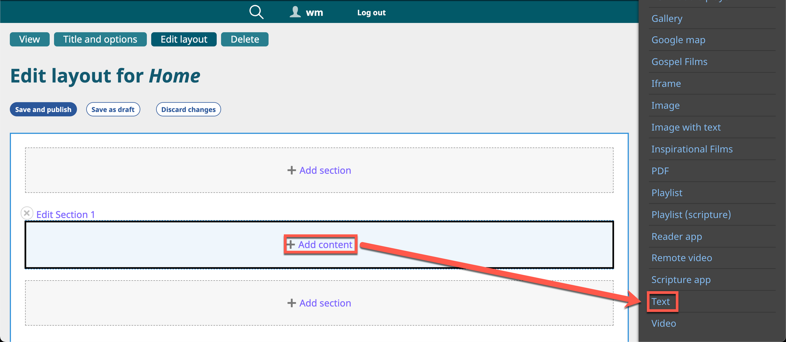 6. Note that a new Content block appears beneath the block just filled. This allows you to add another block to the same section.