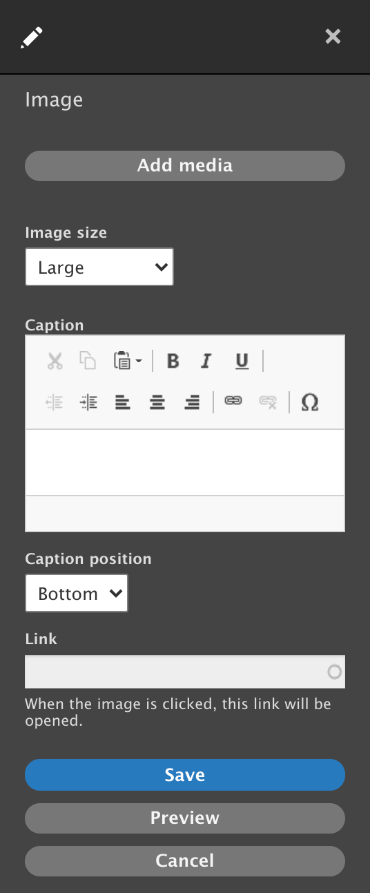 p) You may write a caption for the image and choose whether it is displayed above or below the image.