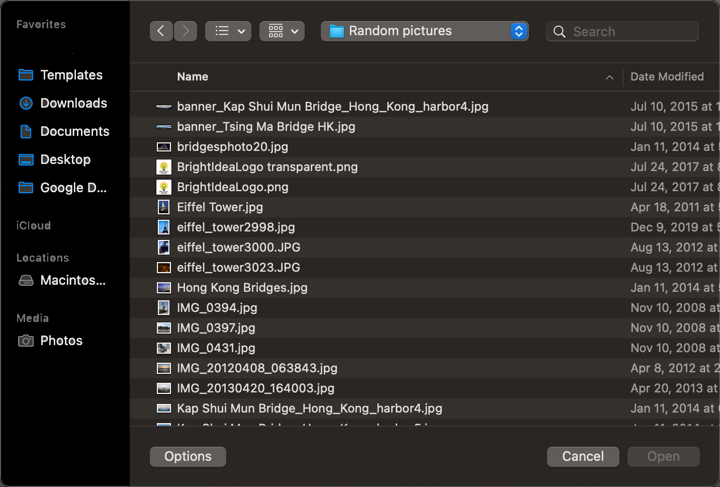 g) Click on the image file name, then click on the Open button (or double-click on the image file name).