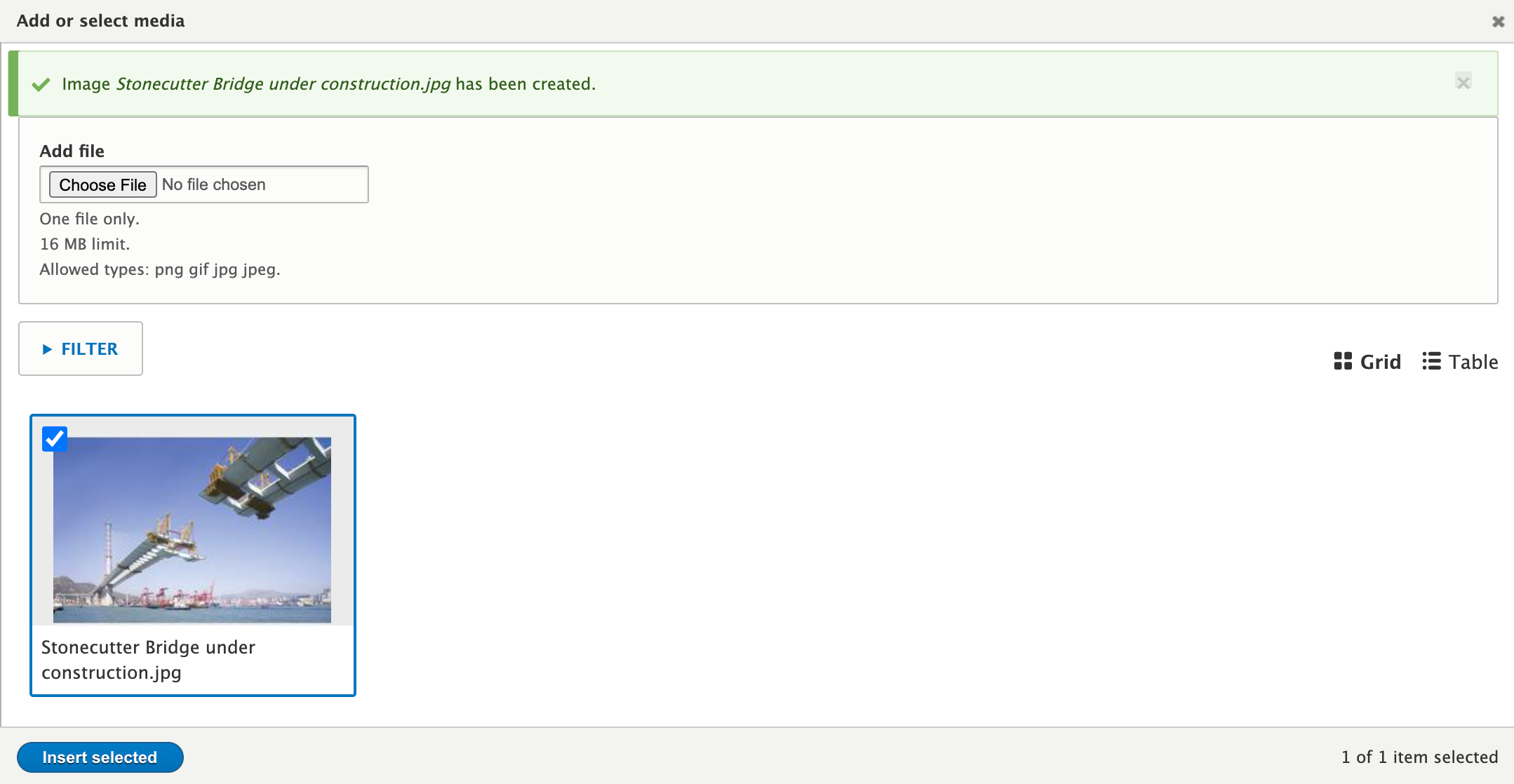 m) Check the box at the upper left of the image, then click on the Insert selected button.
