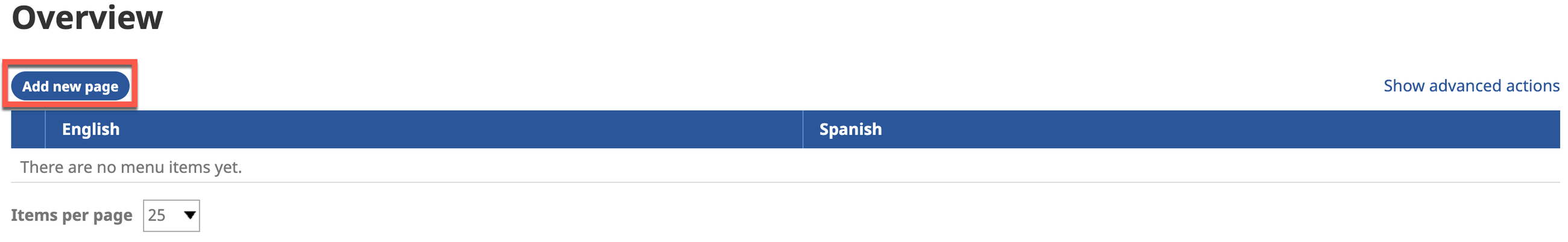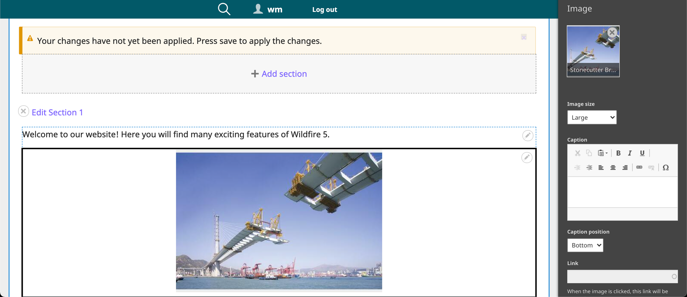 2. To add a new page from the preview screen, in the Wildfire menu, click on sub-menu item Add page.