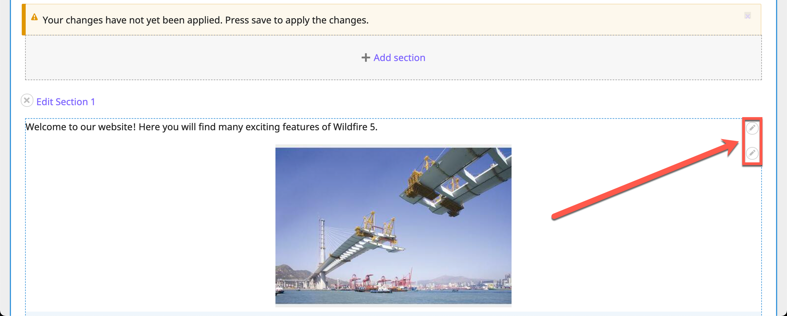 b) In the image above, there are two pencil icons. One is for the text block; the other is for the image block.