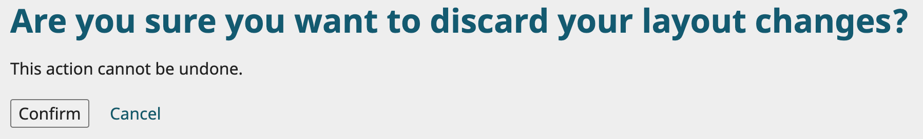 a) A screen asks you to confirm if you want to discard your layout changes (leave the page without saving your work).
