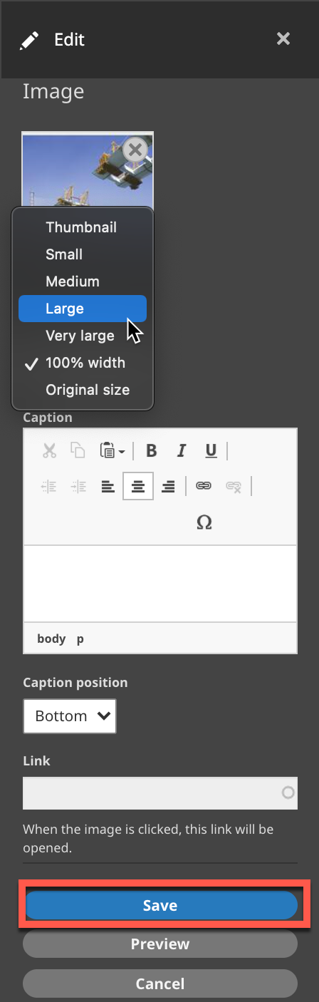 r) IMPORTANT: You must click on the Save button at the bottom of the sidebar, or all you have done with the image will be lost!