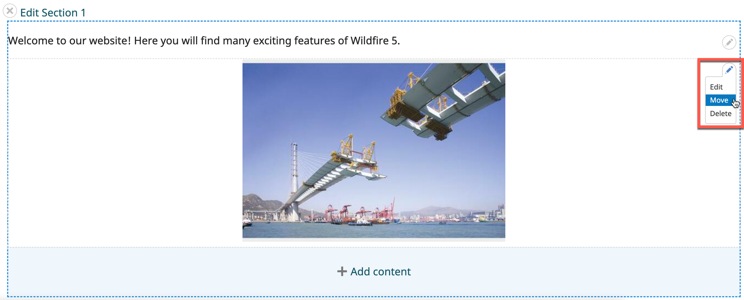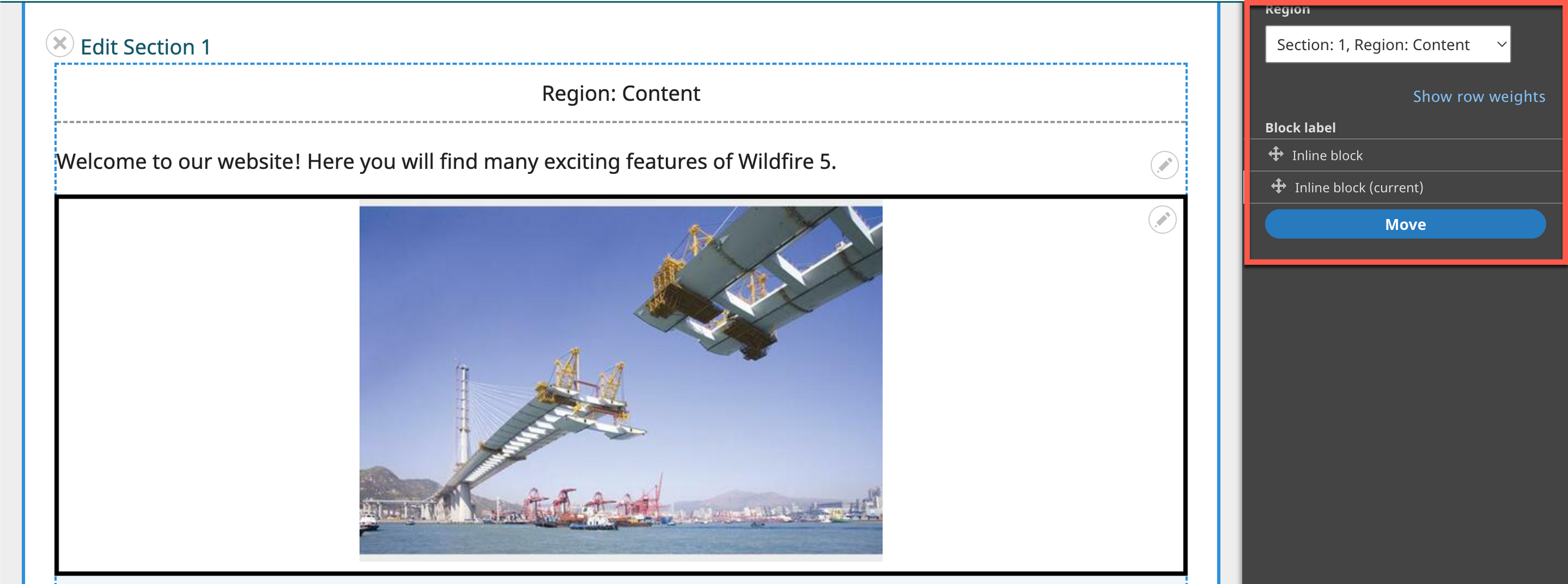 3. Method Two: The other way to move a content block is performed directly on the Layout editor screen, without opening the Move sidebar.