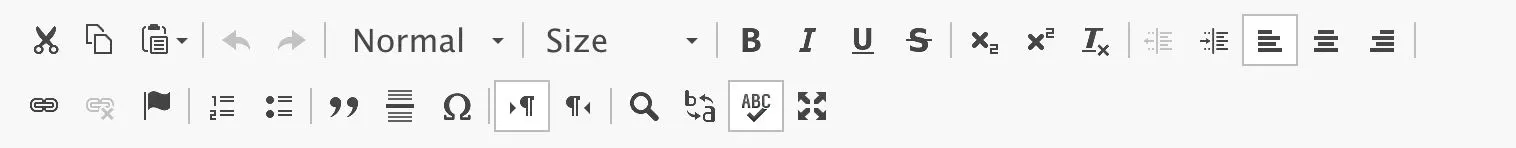 2. The rich-text editor has many features for formatting text and inserting special features. These are accessed through the icons in the top bar.