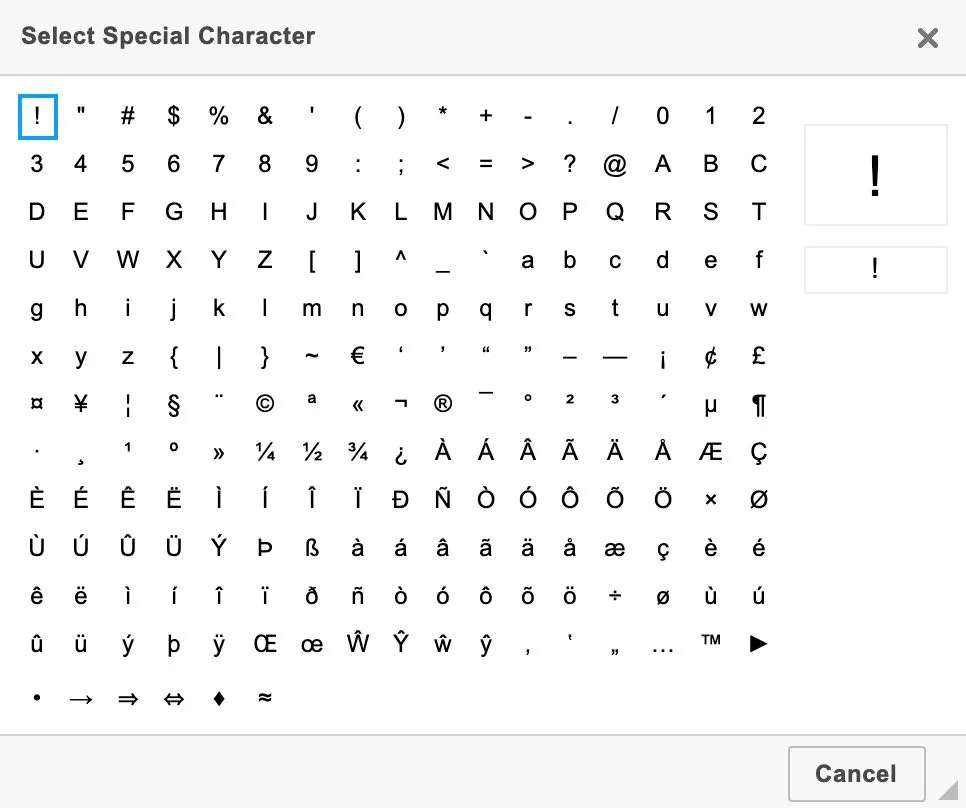 a) Place your mouse cursor inside the editing box in the location at which you wish to insert a special character.
