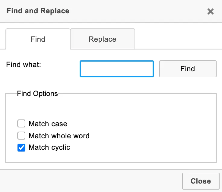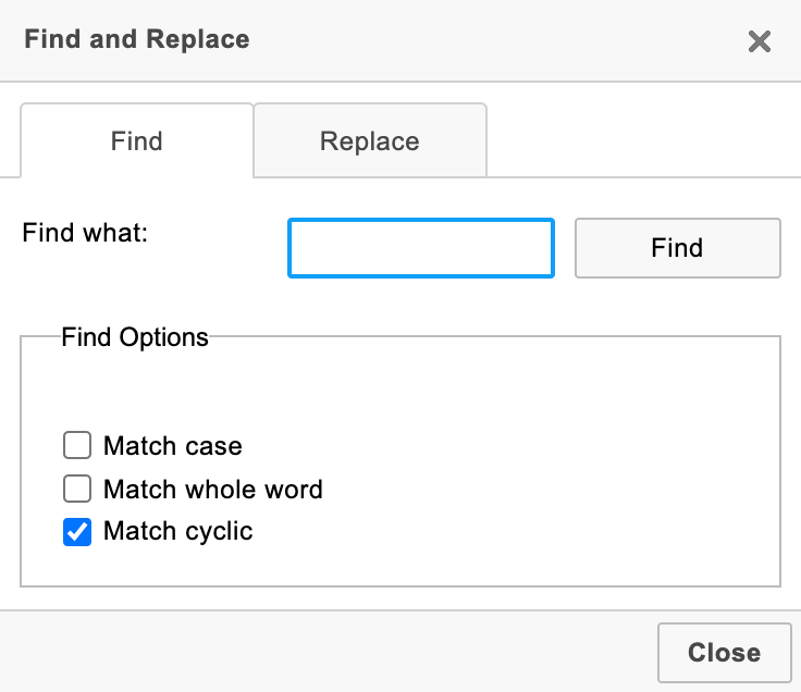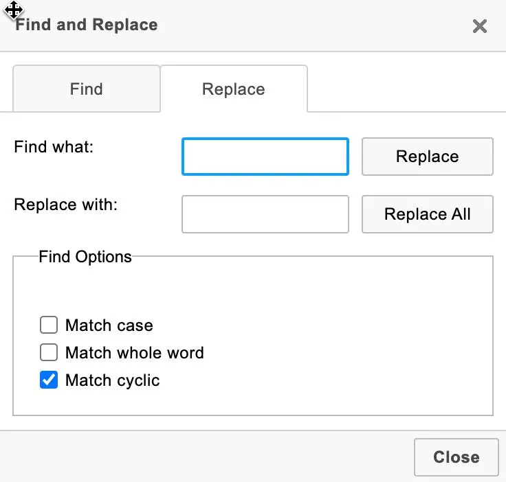 e) Enter the desired words or phrases in the spaces for Find what and Replace with.