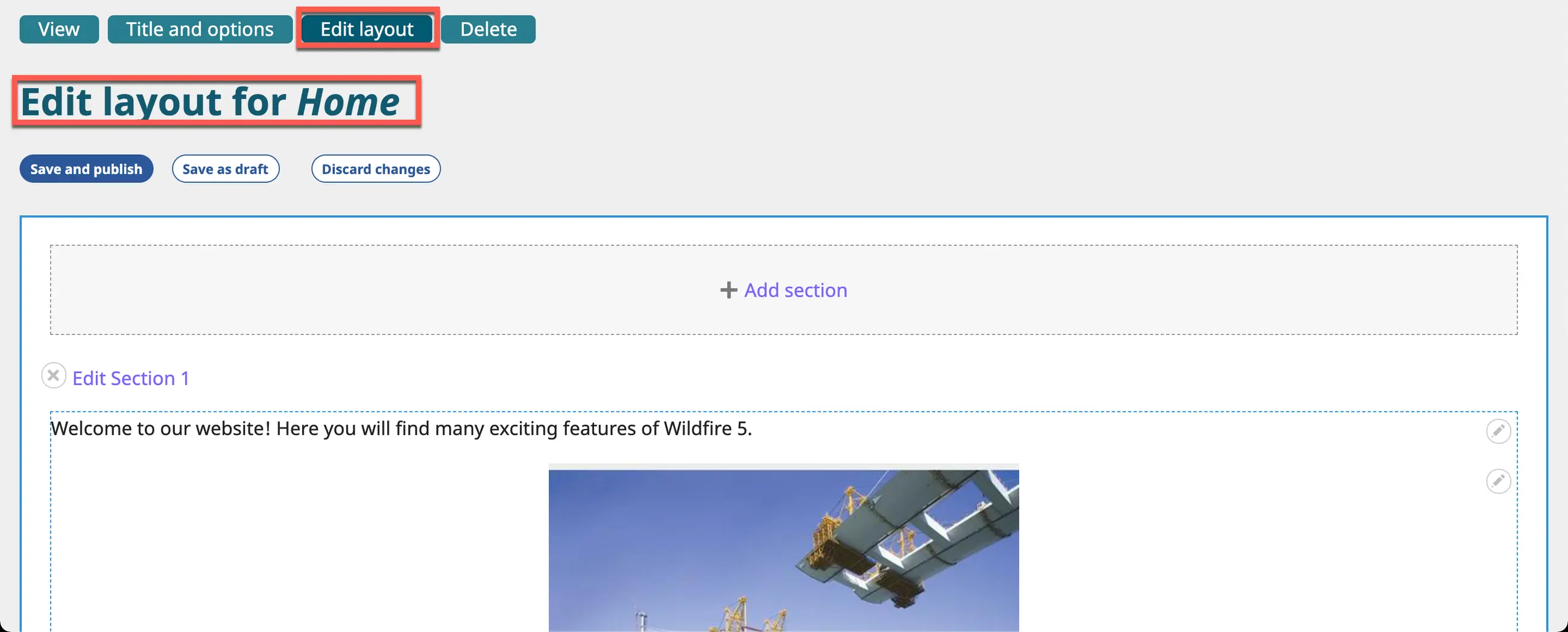 10. You may add new page sections or content blocks – or delete existing ones – whenever you are working on the Layout Editor screen.