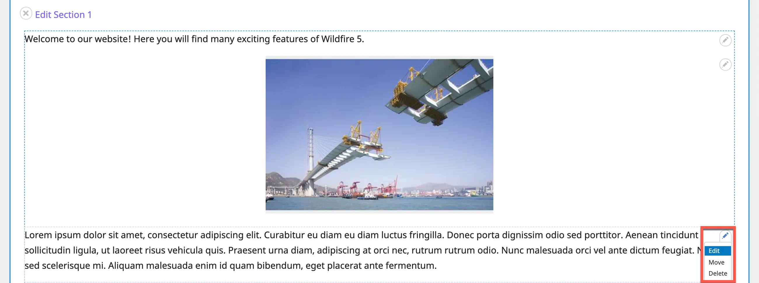 4. Click on the small pencil icon in the upper right corner of the content block.