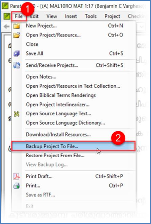 2. Click on main menu item File, then submenu item Backup Project to File.