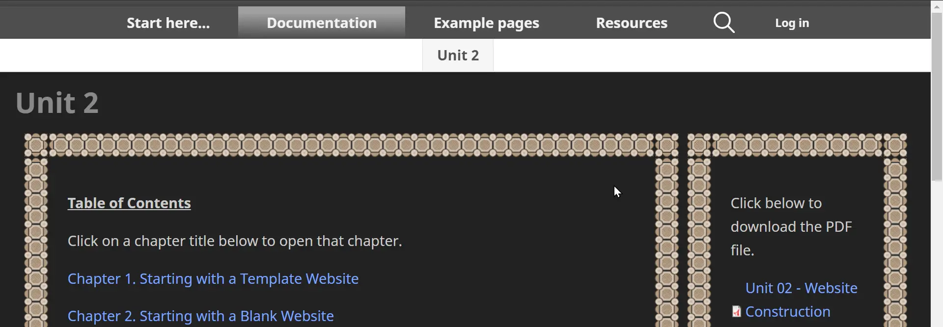 There are four styles of border art, and you may choose whether the border surrounds the whole page (everything under the menu) or just the page content (each content block separately). Your Digital Publishing Manager will configure the border art that you select.